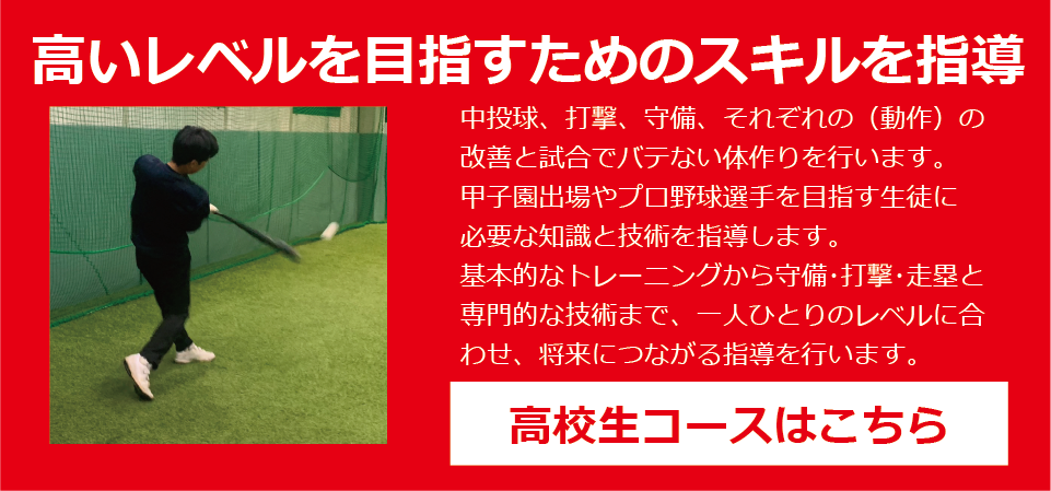 投球、打撃、守備、それぞれのメカニックの改善と向上を目的としたコースです。
